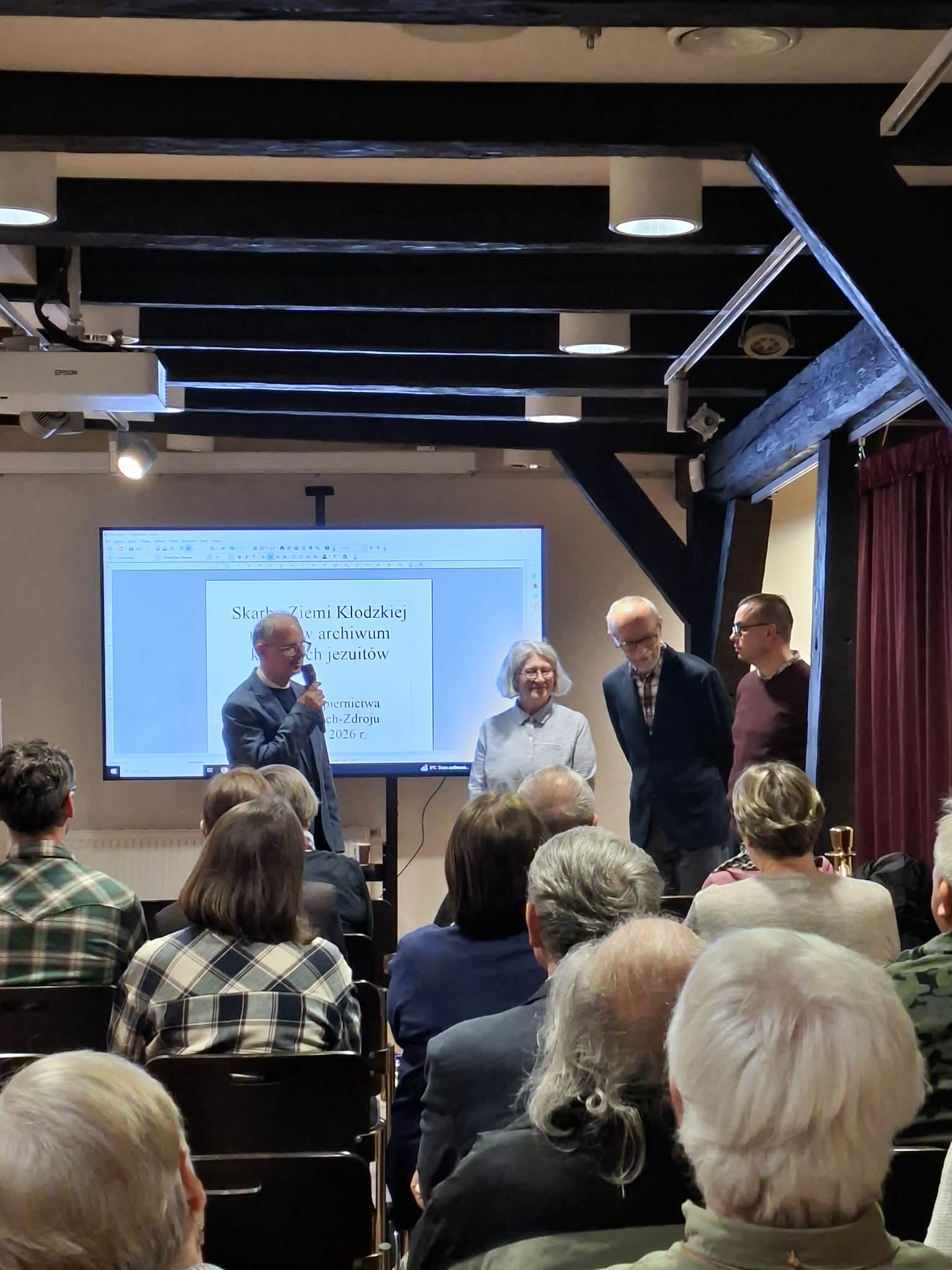 Podczas prelekcji Henryka Szczepanowska, Mieczysław Kowalcze oraz Szymon Wołoch opowiedzieli o skarbach ukrytych w archiwum kłodzkich jezuitów. W zgromadzonych tam dokumentach zachowały się cenne świadectwa dotyczące dziejów regionu, jego mieszkańców oraz instytucji, które przez wieki współtworzyły historię Ziemi Kłodzkiej.