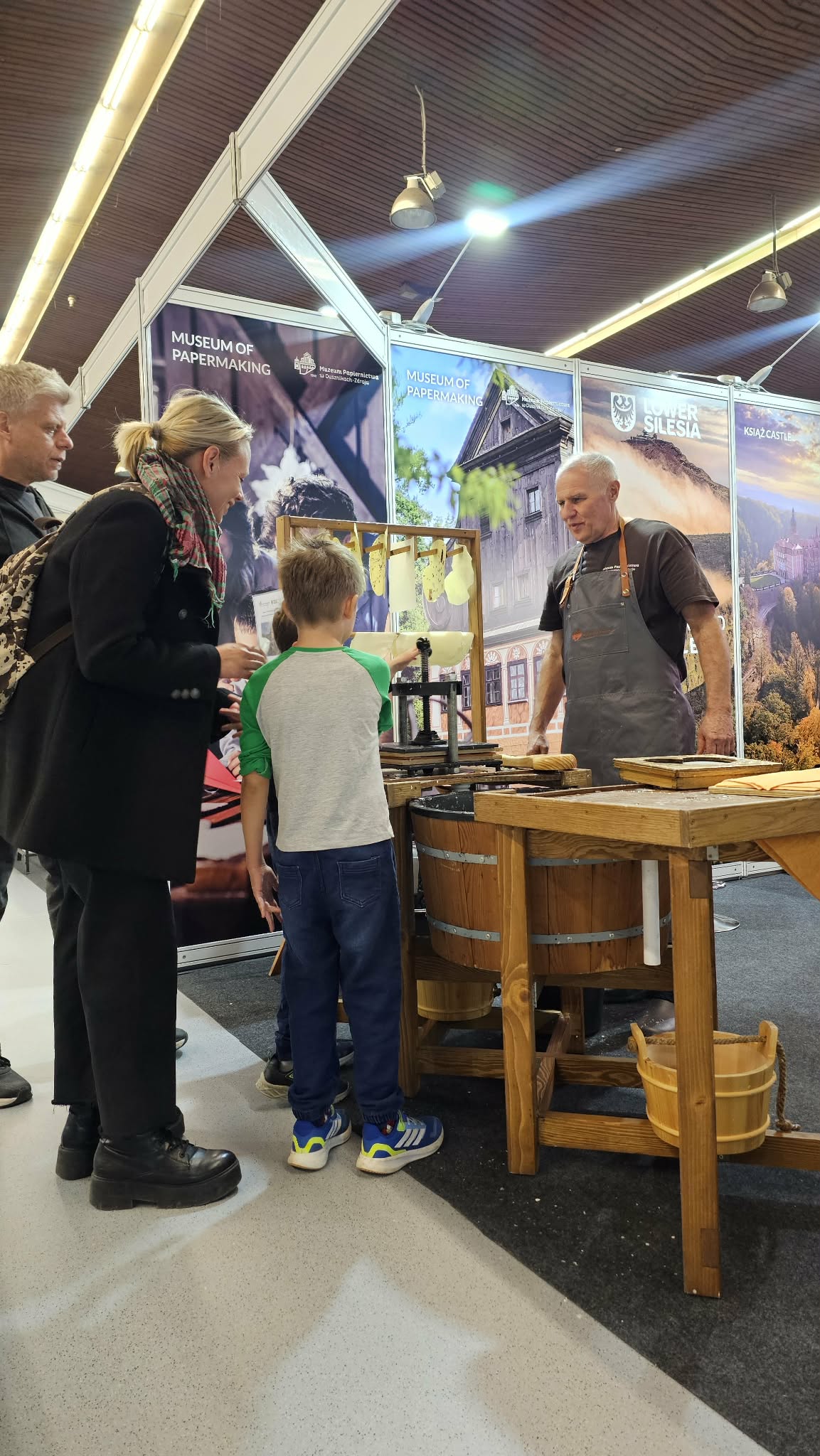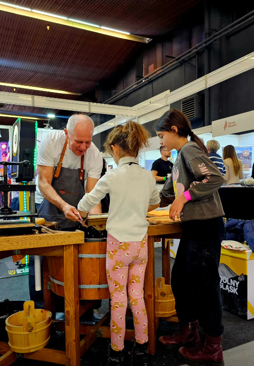 Podczas wydarzenia prezentowaliśmy tradycyjne rzemiosło papiernicze, umożliwiając odwiedzającym udział w warsztatach ręcznego czerpania papieru. Nasze stoisko cieszyło się dużym zainteresowaniem, a możliwość samodzielnego wykonania arkusza papieru była dla wielu uczestników wyjątkowym doświadczeniem.