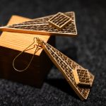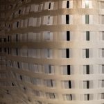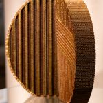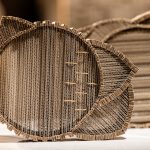 Delikatna bibułka tytoniowa miękko poddaje się wygięciom, zapraszając światło do gry refleksów, natomiast sztywność tektury falistej prowadzi do wyrazistej konstrukcji geometrycznej.
