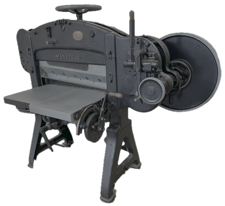 - gilotynę introligatorską z 1920 r. służącą do przycinania stosów arkuszy papieru oraz obcinania bloków książkowych.