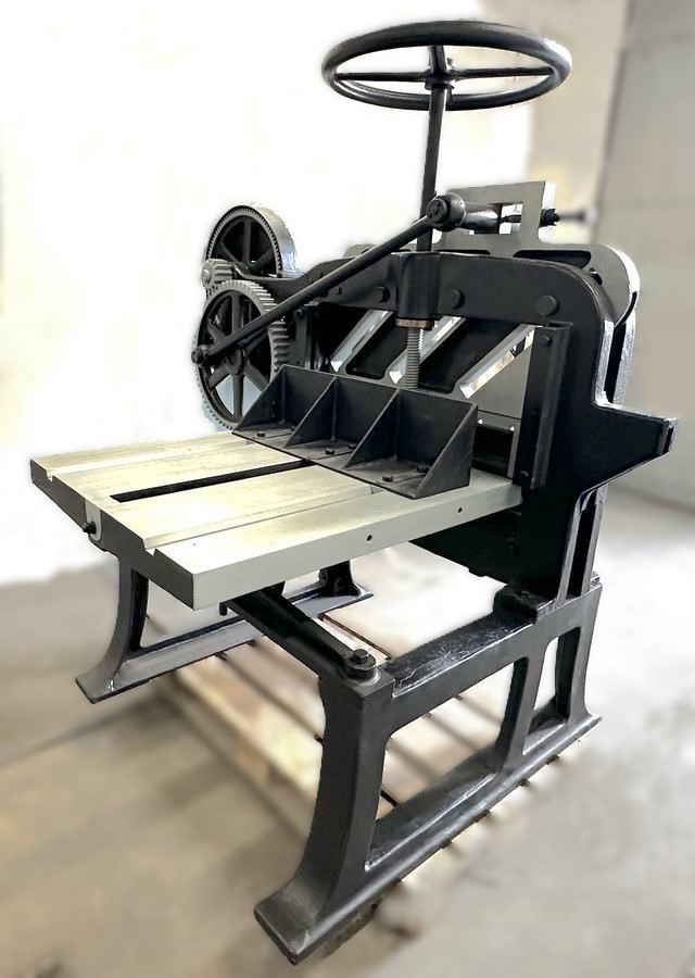 - gilotynę introligatorską z 1930 r. przeznaczona do przycinania arkuszy papieru;
