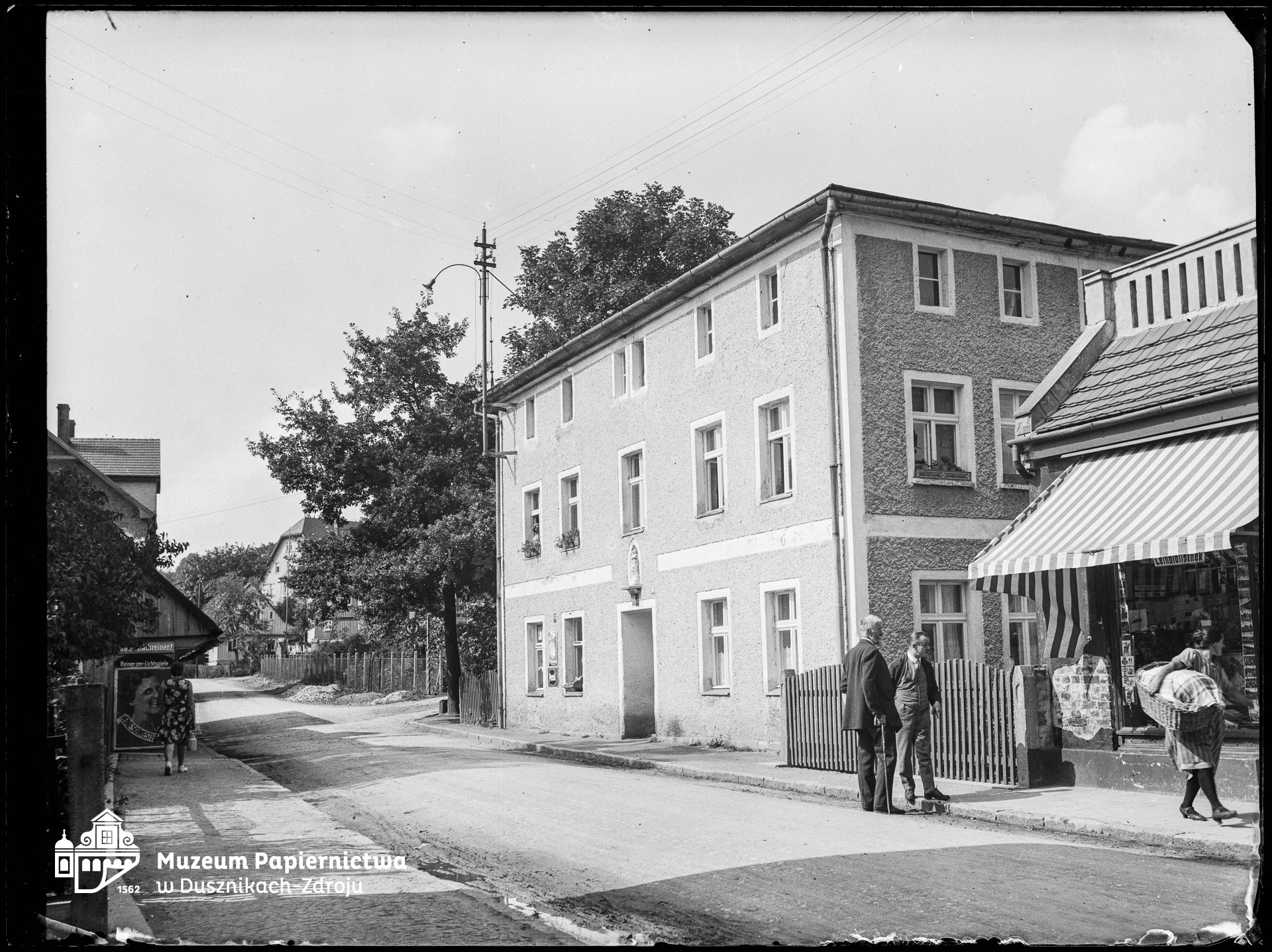 Zdjęcie na kliszy szklanej (negatyw), przedstawiające dom na Heuscheuer Strasse w Bad Reinerz (ob. Duszniki-Zdrój, ul. Słowackiego 28). Z kolekcji Ryszarda Grzelakowskiego. |