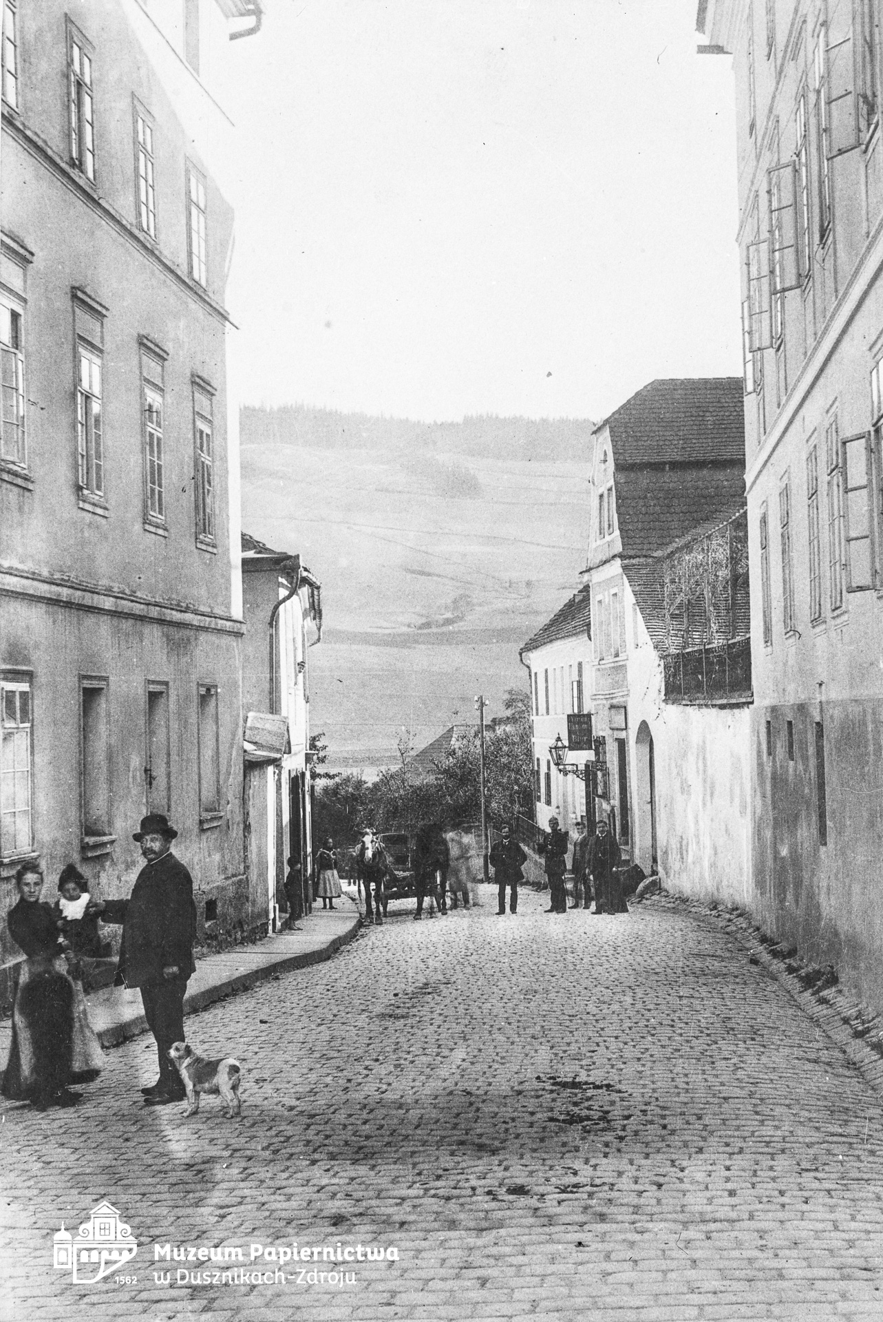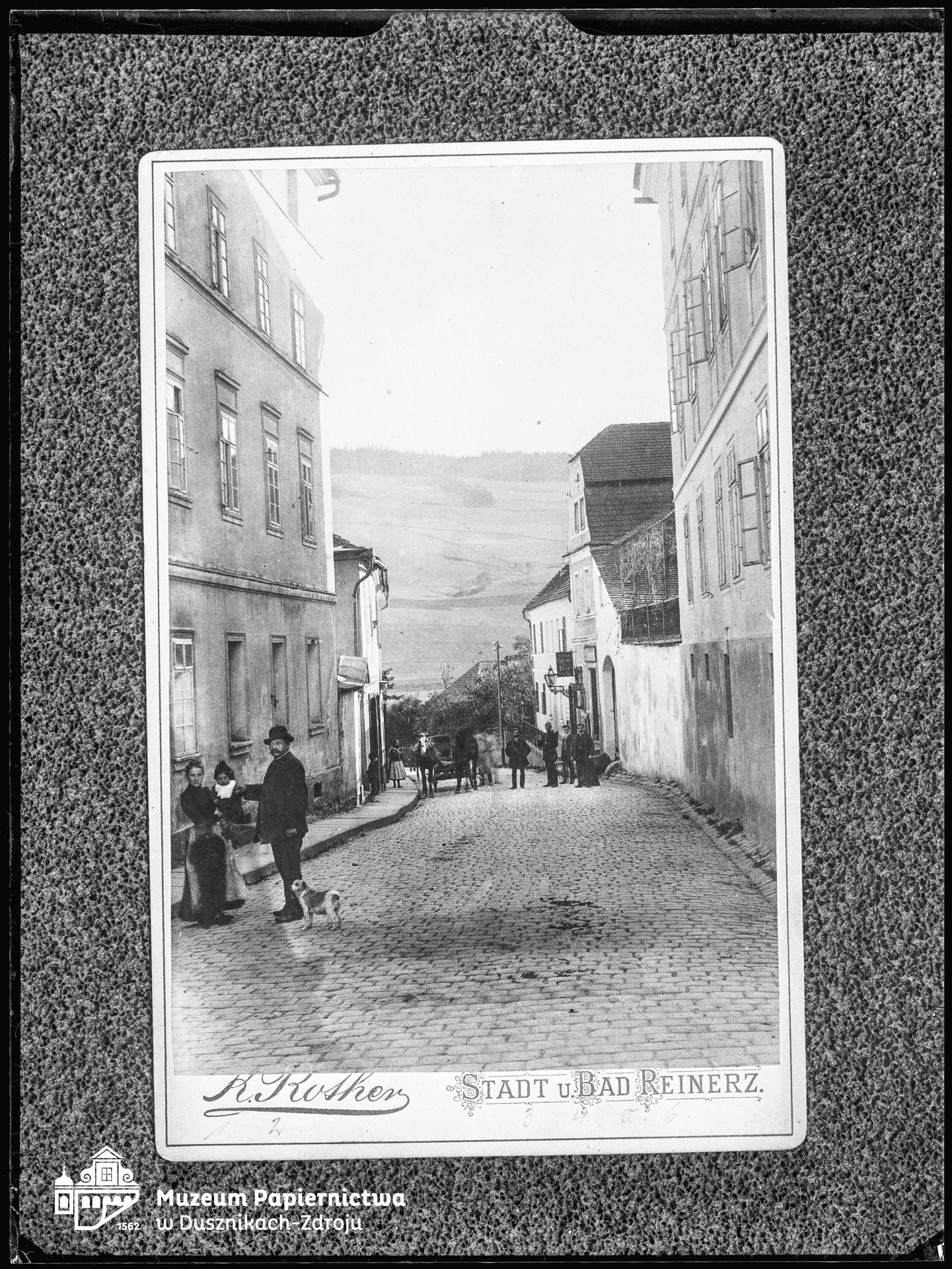 Zdjęcie na kliszy szklanej (negatyw), przedstawiający początek Badestrasse (obecnie ul. Mickiewicza) w Bad Reinerz (Duszniki-Zdrój). |