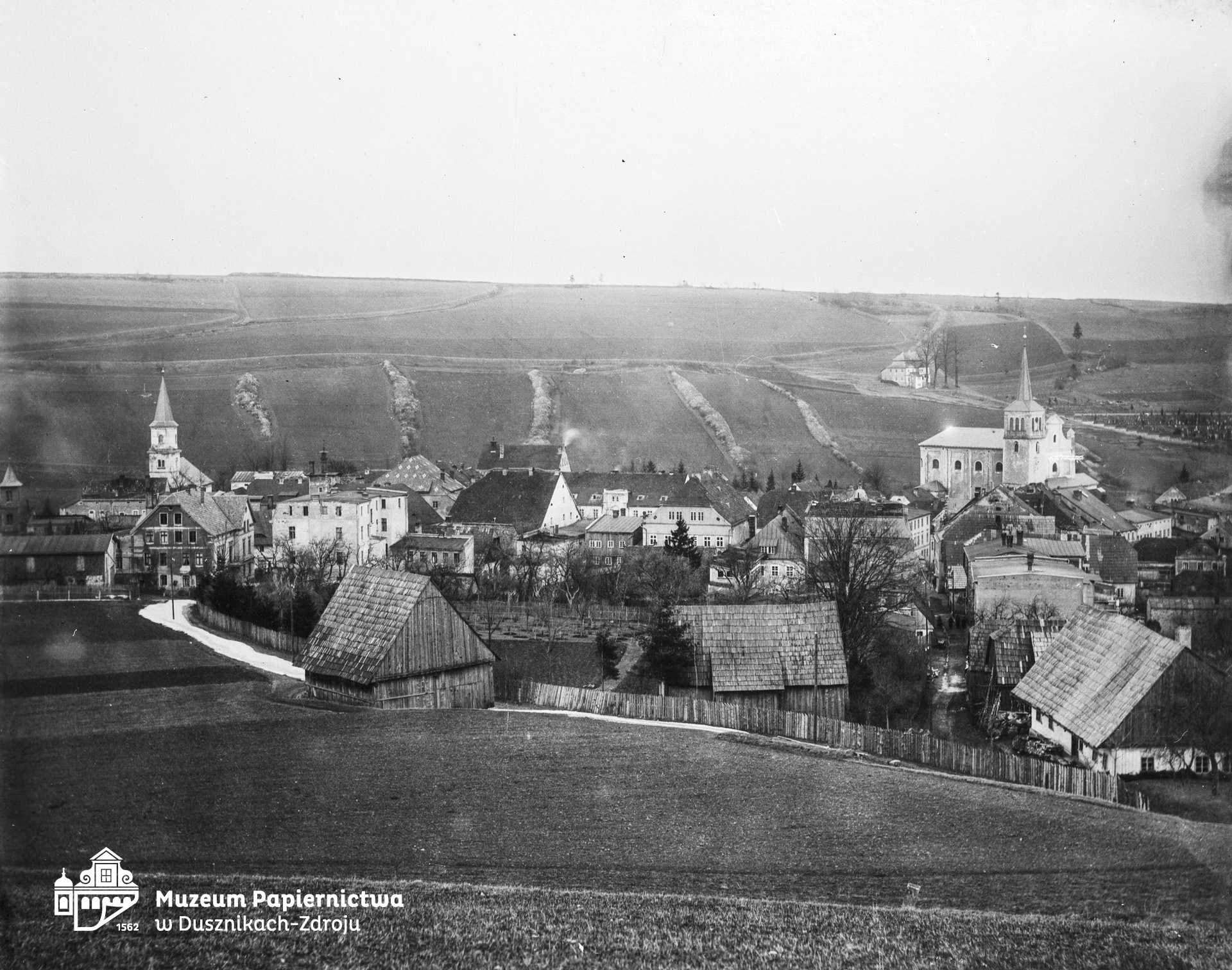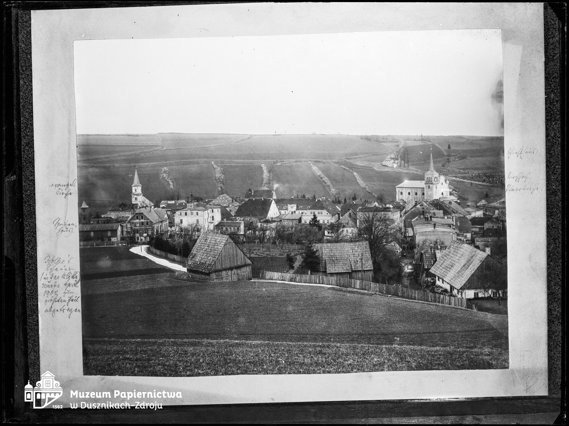 Zdjęcie na kliszy szklanej (negatyw), przedstawiające widok na Bad Reinerz (Duszniki-Zdrój) z Hutberge (Miejska Górka), reprodukcja zdjęcia z 1882 r. Z kolekcji Ryszarda Grzelakowskiego. |